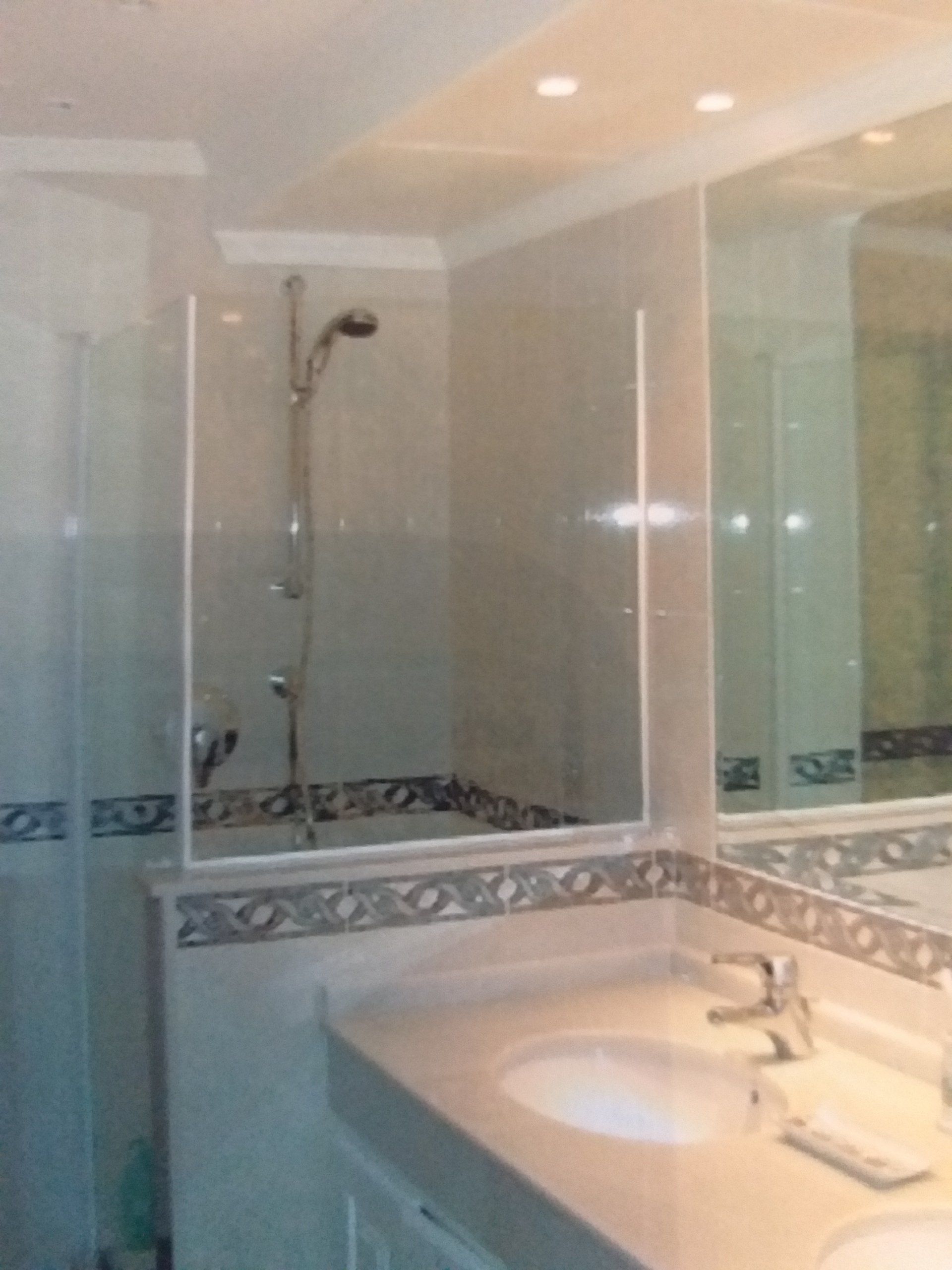 Bath, Shower, WC, Bidet, Double sinks over cupboards and drawers