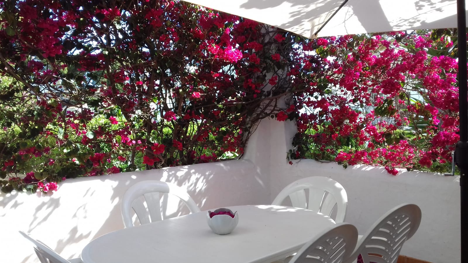 Dining table, 6 seats, Patio umbrella, Sun Loungers and Sun Chairs.